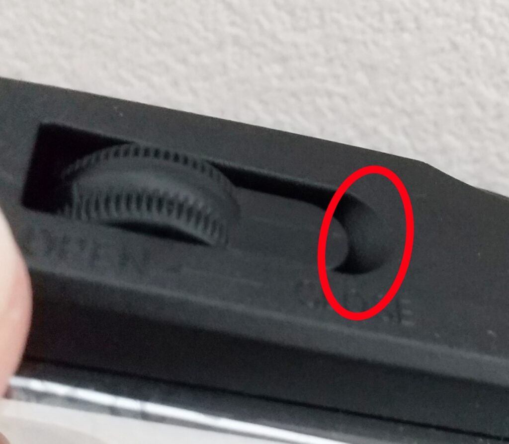ツマミが内側を向いているときは閉まっている状態で、出っ張りもないので引っかかる心配もありません。