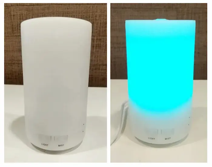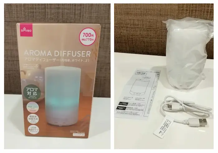 実際に使ってみると、ミストの勢いは穏やかで、デスクやベッドサイドなど、パーソナルな空間を加湿するのにぴったりでした。タンクに水とダイソーで売っているアロマオイルを一緒に入れるだけで、手軽に香りを楽しめます。