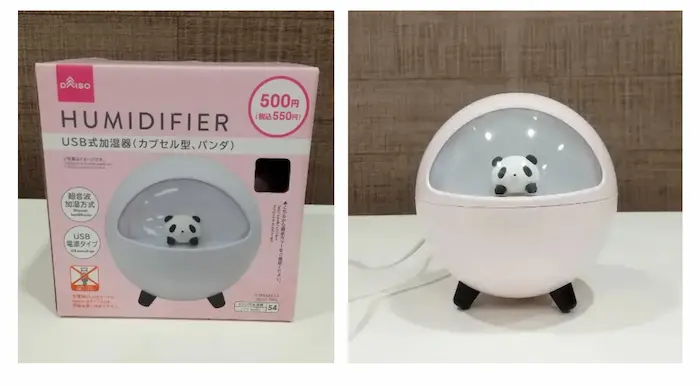 可愛らしいパンダが特徴的なカプセル型加湿器です。本体色はピンクとホワイトがあります。