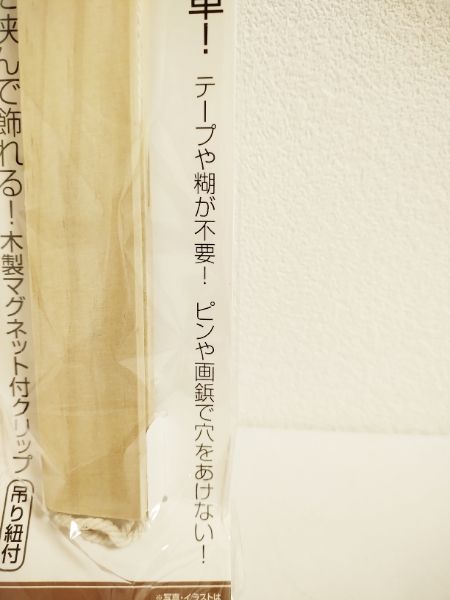 木製のクリップで、絵や写真を挟むだけで飾れるんです。